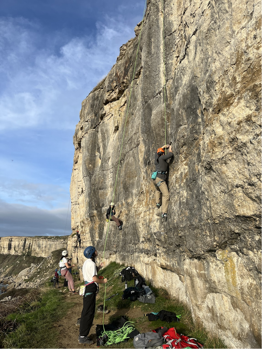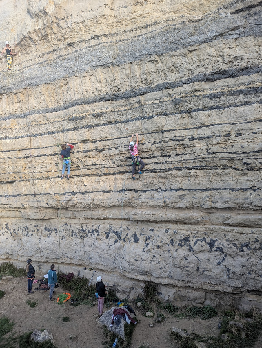 There was a lot of top roping in the afternoon! The sun was out and we were greeted with some lovely weather. In the midst of all this climbing, someone had decided to look over their shoulder into the sea, where, to their surprise, there were dolphins.
