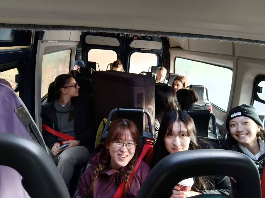 At 5:45am the next day, a dozen groggy girls were at union, waiting for the minibus. Where was Rafi, Amy and Sofia (and the food)? Turns out, they had forgotten the refrigerated groceries and had to turn back to fetch them. Finally, at 6:00, at the girls loaded onto the van, with 8 pads cozily stuffed in between seats, with Natasha, Mack and Aliza courageously volunteering to be at the very back. Lucy, Rafi and Amy conducted the regular role calls, confirming that everyone was up and early. However, an empty seat at the front of the van begged to differ. After the n-th role call, we realized that Claire was missing! Rafi panickily dialled Claire, who had just woken up, and asked her ETA (which was 30 minutes – NOT okay for our plans). Amy and Sofia put their foot down in front of a very kind Rafi. But just as we were about to set off without Claire, a compromise was reached: we could pick Claire up from Wilson House! With this slight hiccup, the minibus of 15 sleep-deprived girls, with Amy at the wheel and Sofia navigating (holding the phone), set out to the Isle of Portland.