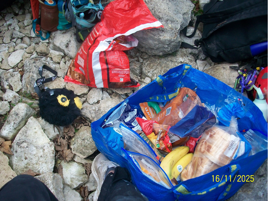 The Femmes and Thems (TM) experience started even before the trip departure time. On a drizzly Friday night, Rafi and Lucy started preparing for the trip that was scheduled to take place early Saturday morning. The two inexperienced boulder bros stared at the pile of gear in stores: what do you even use in rope climbing? Thankfully, Tom showed up thirty minutes later to see Rafi and Lucy in a pile of bouldering pads and kindly chased us out of stores to head to Tesco to complete the food shop. Amy and Sofia, in the meantime, arrived to stores to see all but one (so eight) bouldering pads cleared out, ready to go. They kindly acted as the unofficial gear secretary for this trip, and managed to get everything we needed loaded into the van.