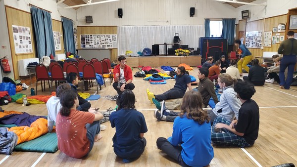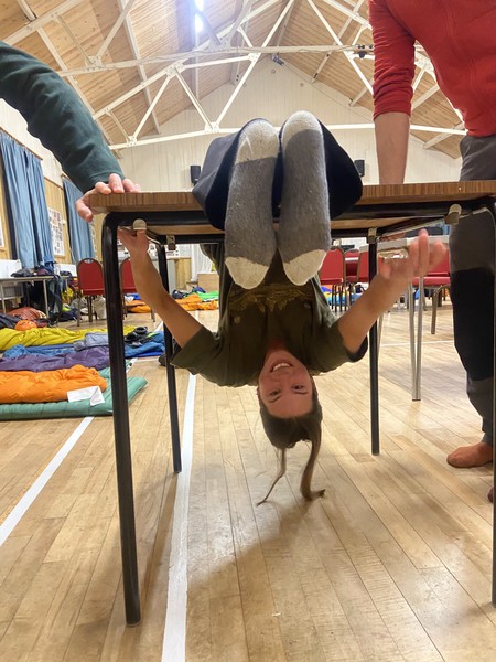 Arriving at the village hall at midnight, we had a bit of a shock when we saw the “kitchen facilities”: a singular oven, a microwave and a boiling water tap. Not ideal for Chef Elliot who had planned a delicious dinner of bangers and mash, crispy cabbage, peas and red onion gravy. He went to bed that night, cogs turning, trying to work out how he’d pull it off - but not before making overnight oats for 30 people.