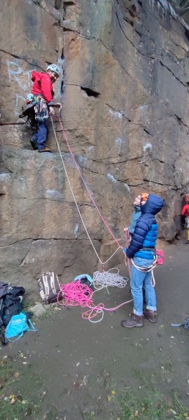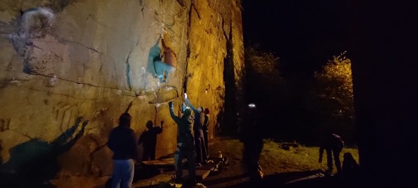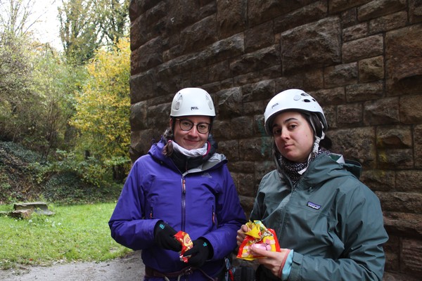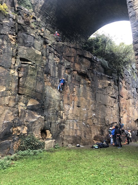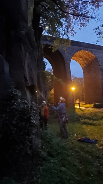 Splitting into our teaching pairs, we spent the rest of the day learning gear placements, abseiling, and most people managed to get their first second in! The crag was very well protected, and had a decent range of trad, bouldering and sport routes for an aqueduct bridge in the middle of a village. Tom Mills (Tom Tom) sent Grim Reaper Direct (f7A+), a spicy little no-topout problem.