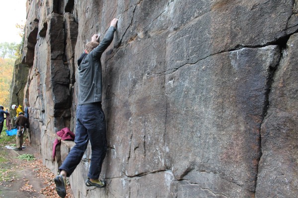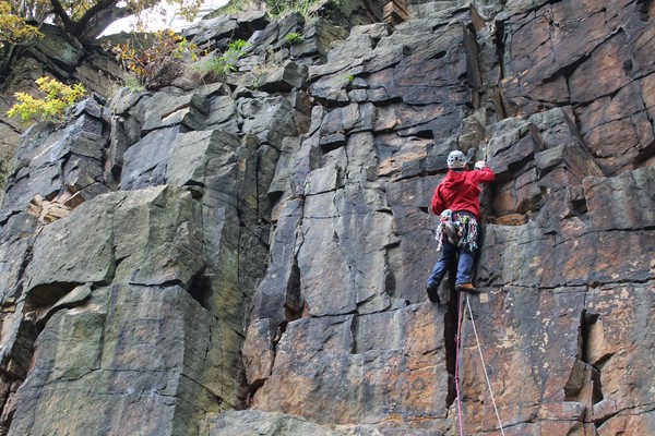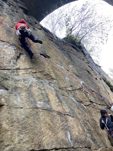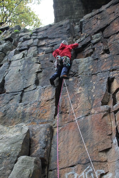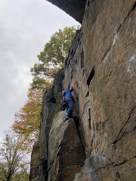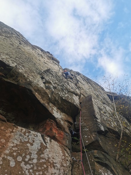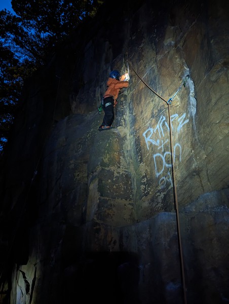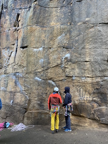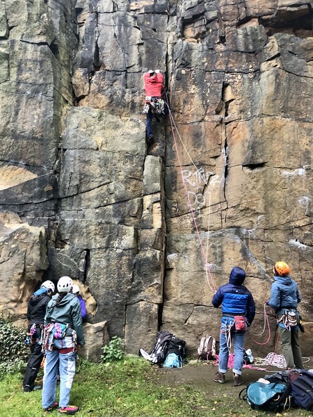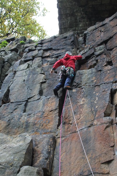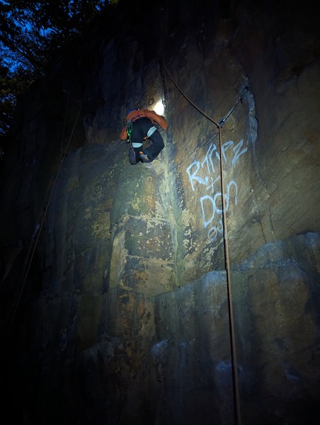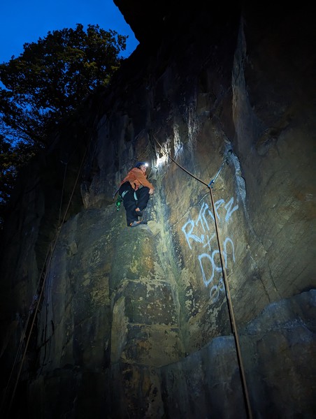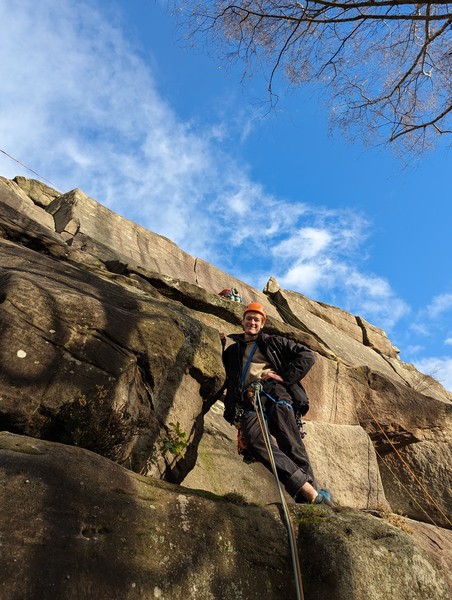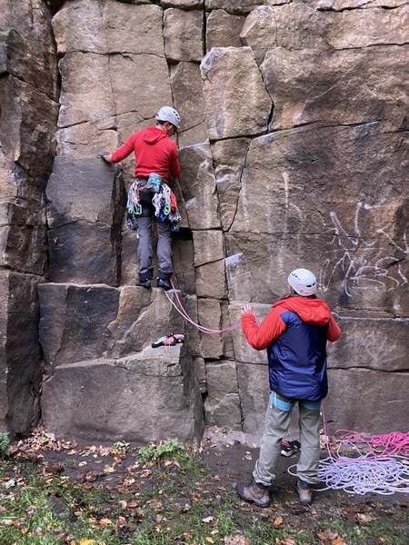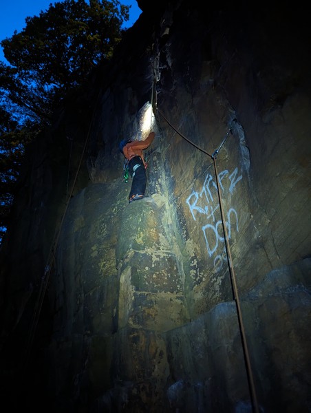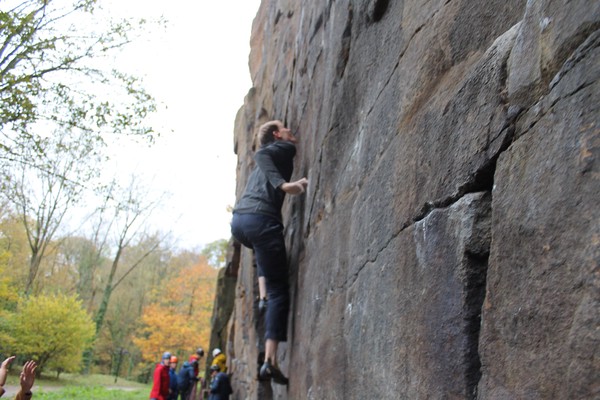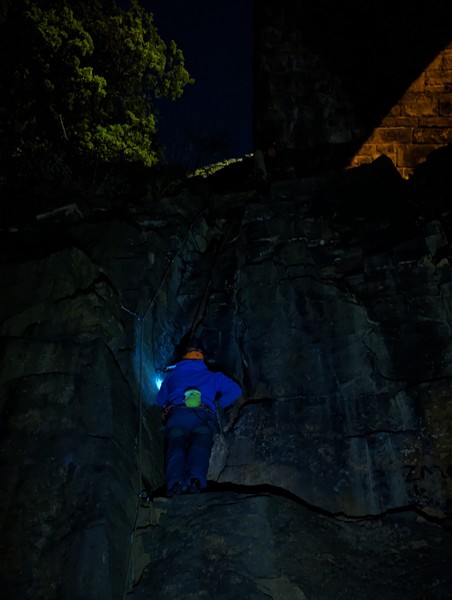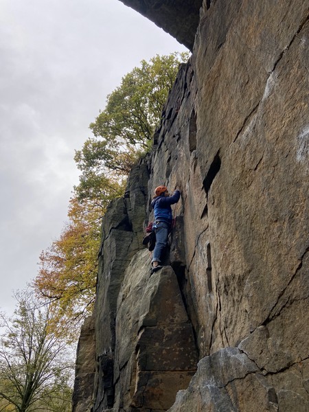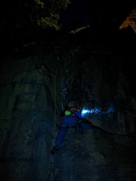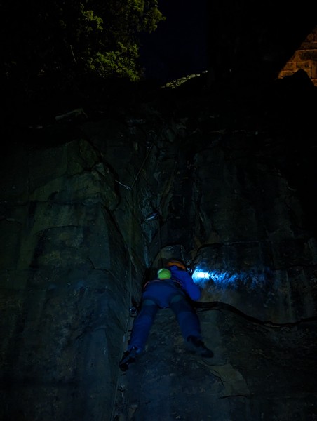 On the second day, Amy sent her first HVS (second ever trad lead!) on Tody’s Wall. Despite some very neat mantle and crack climbing, the highlight was definitely setting a nut so aggressively that the club’s president wasn’t sure what she was doing (eyewitnesses report it looking like a baby shaking a rattle), and then promptly raining nuts down the route. A good learning experience! Amy was also then filmed shouting, “I’M FINE!”, at onlookers warning her that she was runout halfway up the crack. Still a send.