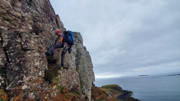 In September 2024, a group of ICMC climbers went to Scotland with the aim of making first ascents in new crags. After a week of bad weather on Skye, the group moved to the isle of Gometra (off of Mull), where we established first ascents in a new crag named Tòrr Mòr (West). The group then spent some time on Erraid for some granite trad climbing, where 3 further first ascents were climbed. Finally, a few multi pitches in Glen Nevis rounded off the trip, including an unfortunate injury which required some self-rescue and a trip to A&E. Read all about it in the trip report!