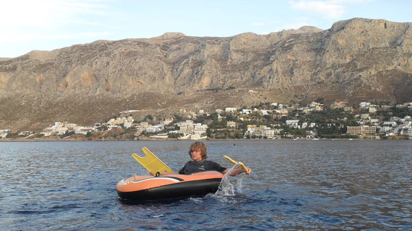 All of us decided to have a rest day and went to Telendos where we hired sea kayaks and went to a small uninhabited island with a church on (about 2km away). We then had a tasty cheap lunch at a restaurant on Telendos. For afternoon entertainment most of us swam the 1km from Telendos to Kalymnos, for many of us our first open water swim. Fresher paddled the dinghy from the swimming pool at Babis Bar using a slippery when wet sign, a true act of heroism that required reinflation at the half-way mark. Celebratory ice-cream and beer were consumed.