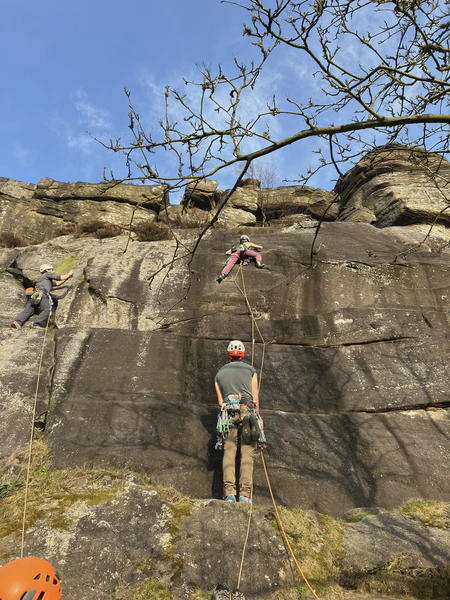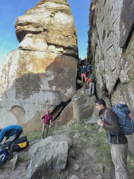 The postgrads (and a few undergrads) took a trip to the Peak District with the goal of teaching trad to as many keen members as possible. A few boulderers also came along to fill the bus seats.