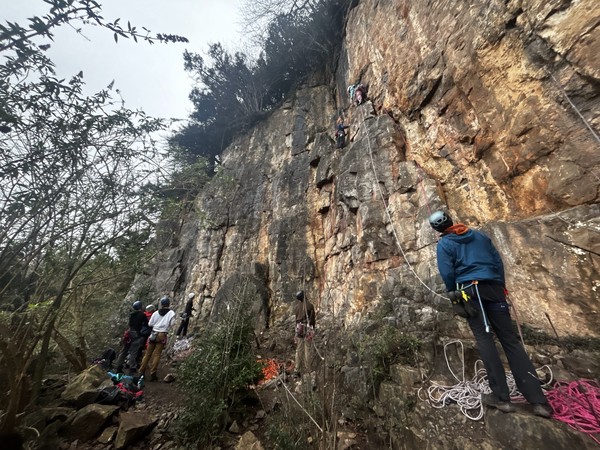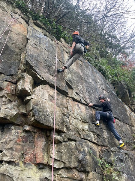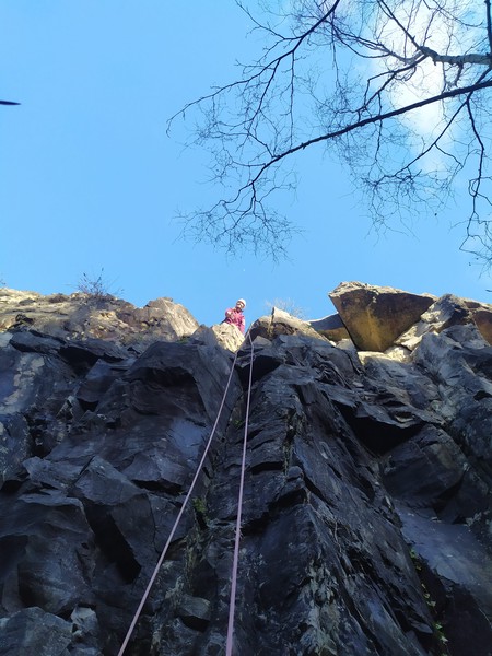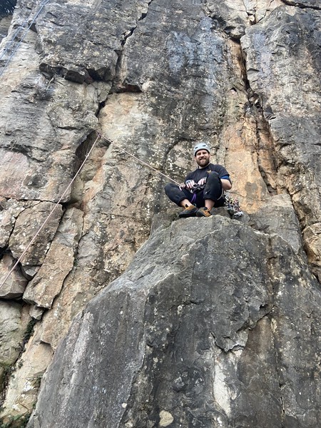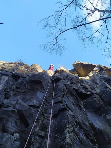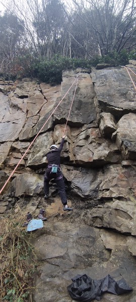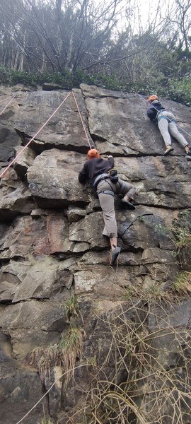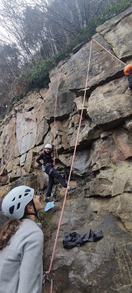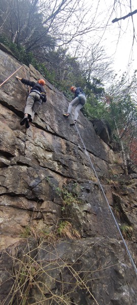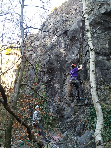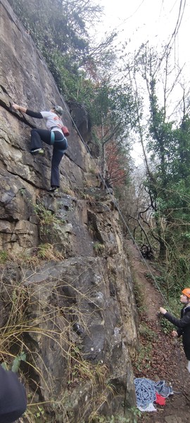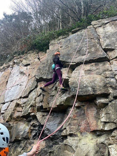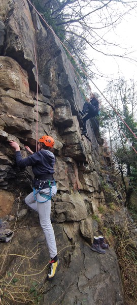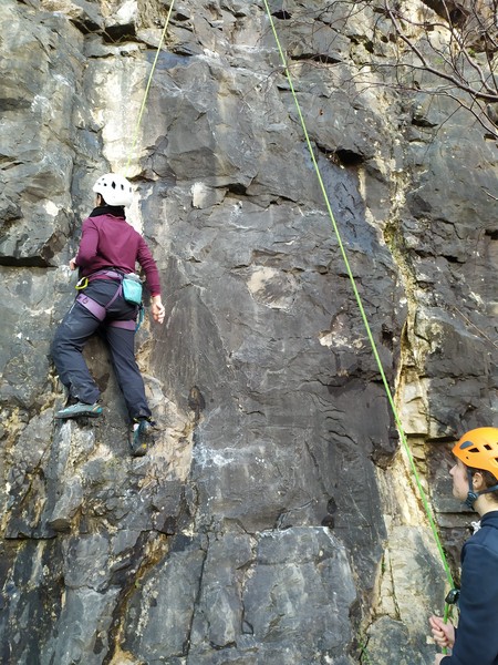 We had a good few hours of climbing in before the rain descended at the exact time that Tom’s weather app said it would. Cat, Marlene, Ruairi, Nik and Maz all did their first outdoor toprope/lead climbs.