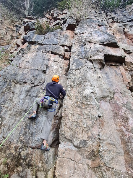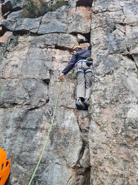 Pretty much everyone tried their hand at the world’s hardest 6a+. Once Amy tried and failed we concluded that there must have been a broken off hold - UKC comments agree. Sofia and Amy went to tackle what they thought was a breezy 25m 6a+. Despite not finding it all that simple, Amy gaslit Sofia into thinking she was seriously struggling with “it’s not even a bad 6a+”. Further consultation of UKC determined it was a new route, 6b/+ 😵💫