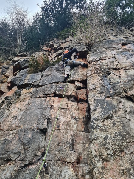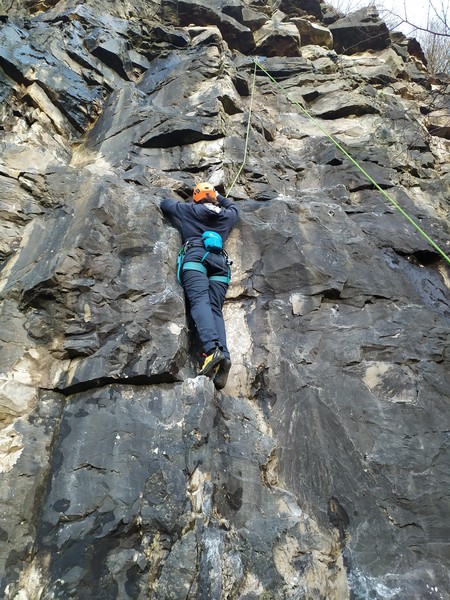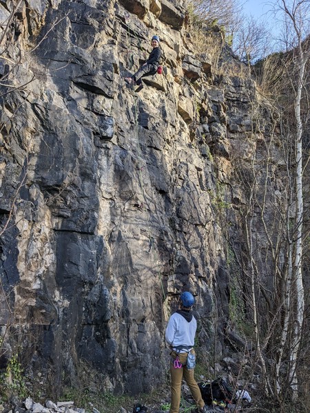 Shockingly when we arrived at the crag, the rock was surprisingly dry given just how much rain had fallen the night before. Everyone managed to get a couple of climbs in. The quarry proved reliably chossy, and Marlene caught a huge rock headed straight for Lucas’s head (somehow this moment was captured on film).