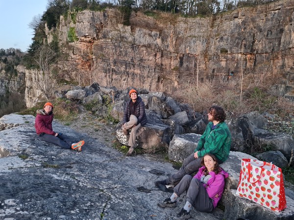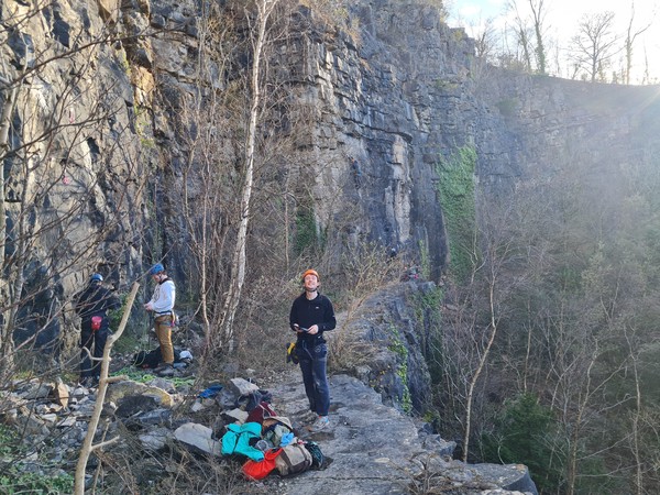 The next day we were met with beautiful sunshine. We decided to split the group - Amy and Sofia taking the sport climbers to Cheddar Gorge and Elliot leading the charge with the hardcore trad climbers, off to explore hard climbs in Goblin Combe.