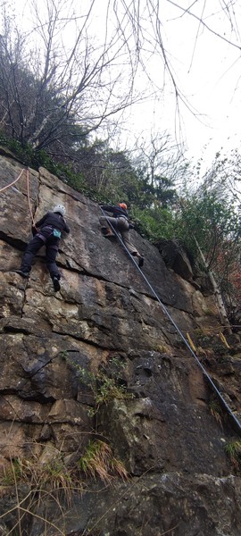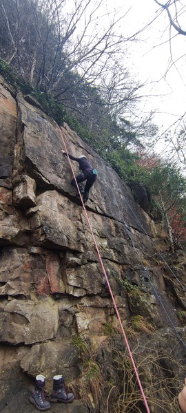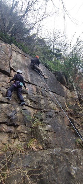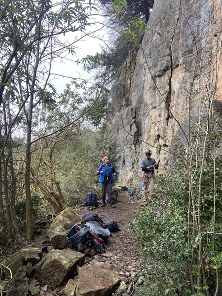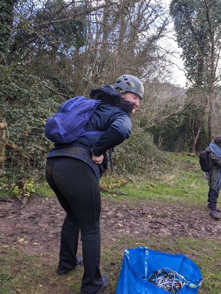The sport climbers somehow struck luck on arrival at Wintour’s Leap, where it was lovely and sunny. However, as no one had been to Wintour’s Leap before, Sherpa Sofia led the sheep down the horrendously muddy and slippy long approach that is NOT the quickest way to the sport crag. This involved 45 mins of slipping and stomping through the mud downhill, uphill and through a bog. Amy’s freshly washed 70m long poo rope (another long story) did not survive the journey unscathed.