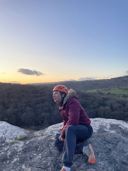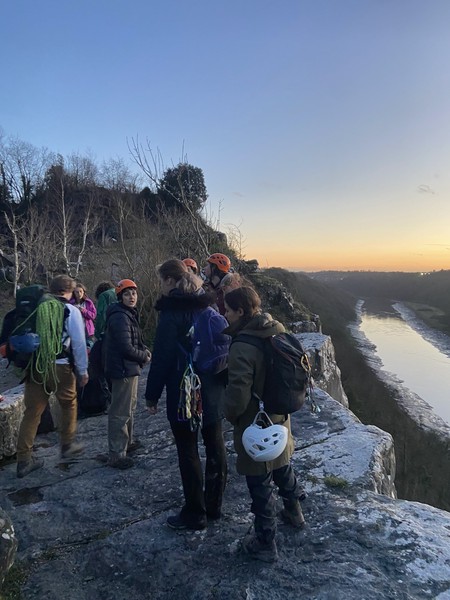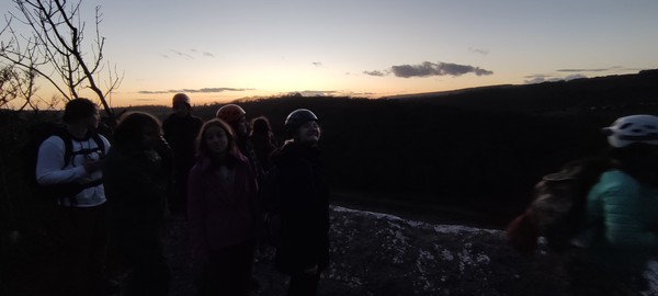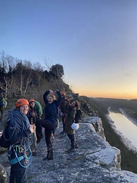We had a beautiful sunset and group photo at the top of the crag (fans of Sex Education might recognise). We discovered there was a much easier way to access the crag 🫠 Luckily for all but Amy, this meant that the group was far from the minibus so they got to go chill in the pub whilst the minibus was retrieved.