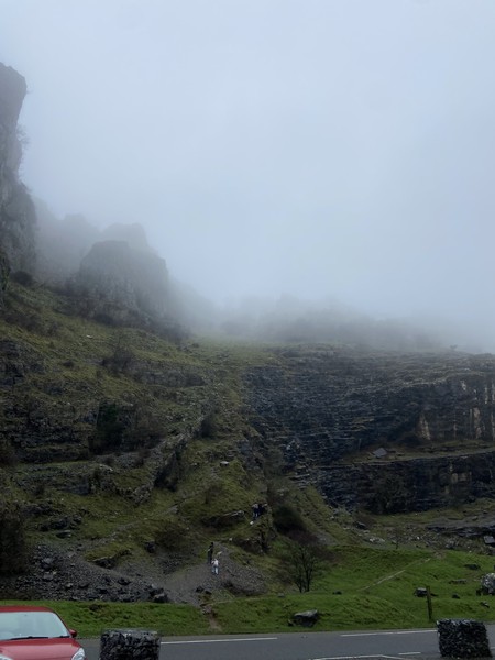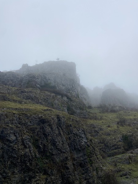 We probably should’ve turned round as soon as we crossed the bridge into England and were met with heavy mist… Lesson learnt: the weather at the crag might not be the same as at the accom 😬